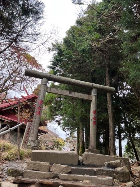 阿夫利神社下社で参拝を終えた後、いざ大山山頂を目指して歩き始めます。上を見上げると予想以上に険しい道のりが見え、足場を探しながら岩場を登っていきました。休憩を挟みながら一歩一歩山頂を目指し、なかなか厳しい登山となりました。