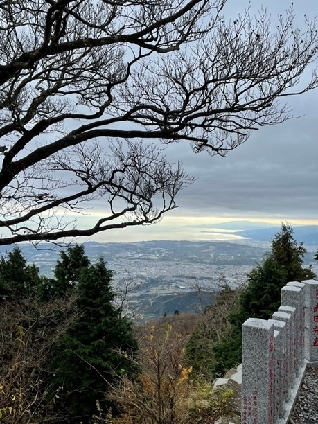 全員なんとか無事に山頂まで辿り着くことが出来ました。あいにくの雲行きで富士山を見ることは叶わなかったのですが、東京側は晴れていて、スカイツリーや江ノ島もきれいに眺めることが出来ました。山頂から見た景色は、疲れも吹き飛ぶほどの絶景でした。大山山頂は、「関八州の展望台」とも言われ、「かながわの景勝50」にも選ばれています。