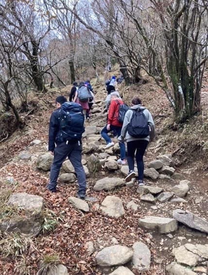 4時間近くもの登山に疲労を感じつつも、みんなの達成感に満ち溢れた清々しい表情が印象的でした。ちょうど紅葉のシーズンで、美しい景色を眺望することが出来ました。