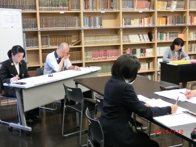 平成27年7月2日(木)、大正大学3号館5階仏教学閲覧室3におきまして、「智山豊山合同大学院中間発表会」が執り行われました。これは、本年度に修士論文提出を控えている院生のための研究経過報告の性格があります。また、各院生の研究状況を諸先生方に聞いて頂き、方向性や検討方法に対するご指摘・ご指南を頂戴する貴重な機会でもあります。今回の発表者は9名でした。