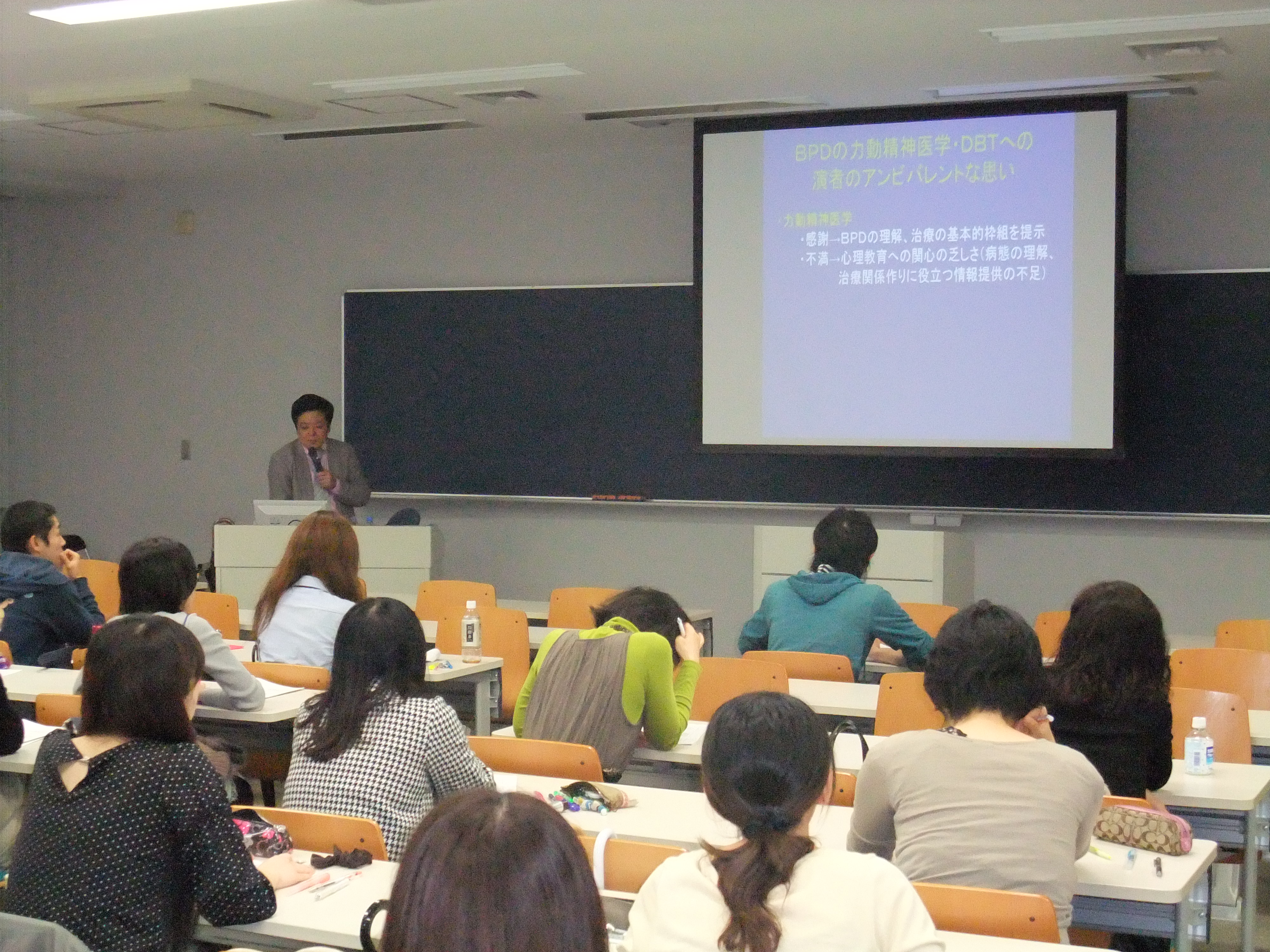 2010年10月9日(土)、大学院事例検討会において、特別講義として原田メンタルクリニックの原田誠一先生をお招きして、認知行動療法についてご講義いただきました。認知行動療法の基礎的な理論にとどまらない、原田先生ご自身の臨床場面における実践をお話ししただき、出席した院生、教員共に新たな視座をいただく学び深い時間となりました。