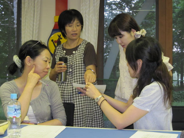 毎年夏休みに行われる日笠ゼミのゼミ合宿、今年は長野県黒姫のペンションで行いました。日笠ゼミ御用達のペンションでは、テーブルは卓球台、壁にはバレエのバーレッスンができるような大きな鏡のある特別な会議室(?)で、修士論文執筆に向けての検討会を行いました。丸二日がかりで7名が、各自の研究計画や質的分析など、濃密な時間を過ごしました。