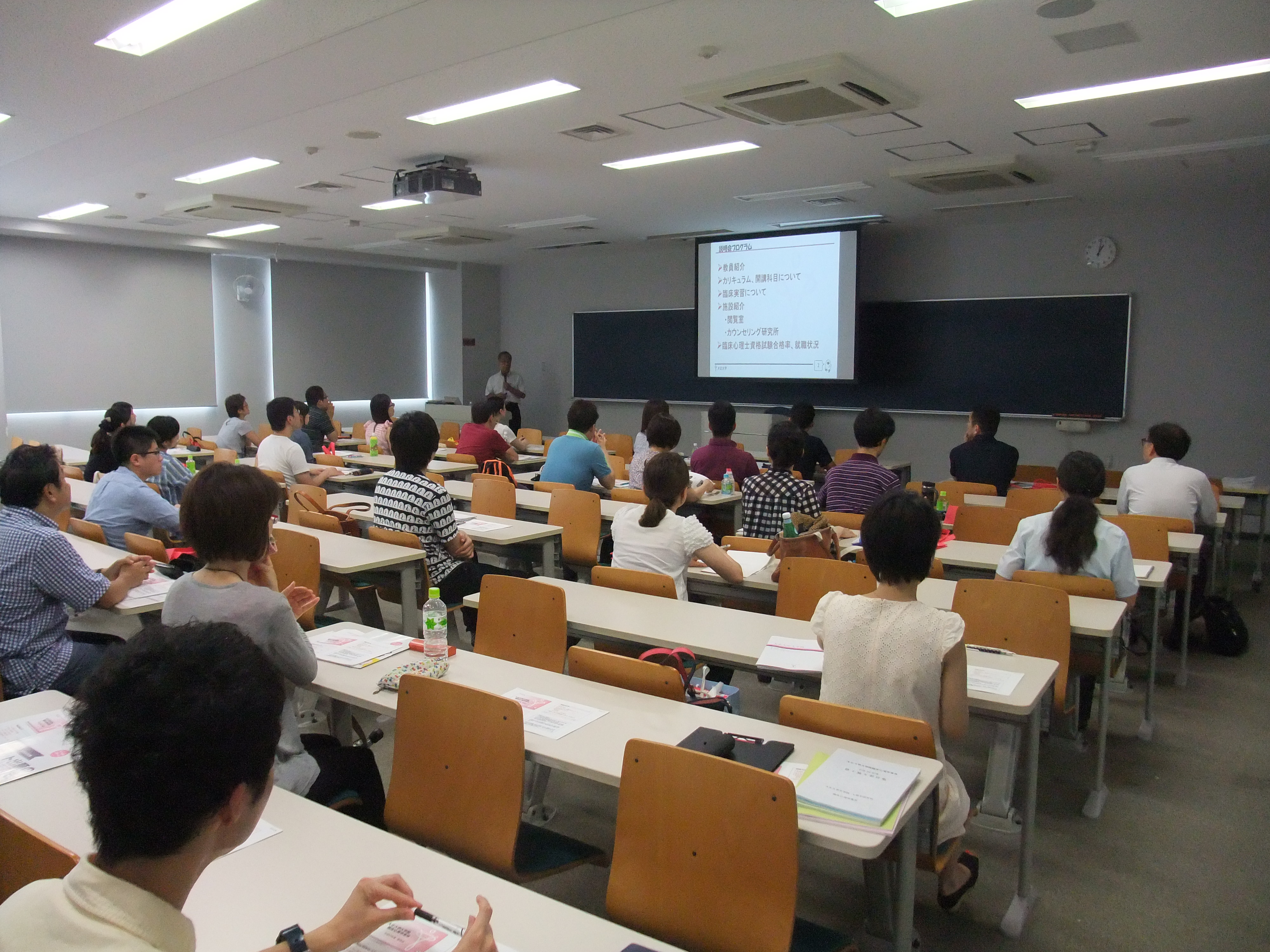2015年7月26日 大学院臨床心理学専攻では、大学院の受験希望者を対象に、第2回大学院説明会を開催いたしました。当日は猛暑の中、37名の方にご参加いただきました。