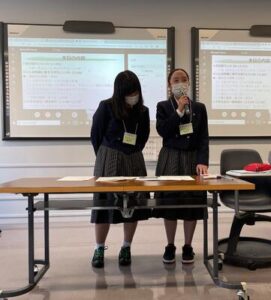また下記は,栃木県立小山高等学校に所属している高校生がゼミ活動に参加してくれた時のものです。「小山高等学校探究プログラム」と呼ばれる進路に関する高校独自のプログラムの一環です。小山高校の生徒さんが発表中