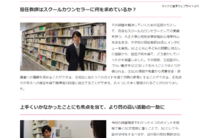 今回、臨床心理学科の山本渉先生がその取材を受けました。スクールカウンセラーの協働について取り上げられています。先生の研究成果について紹介されています。