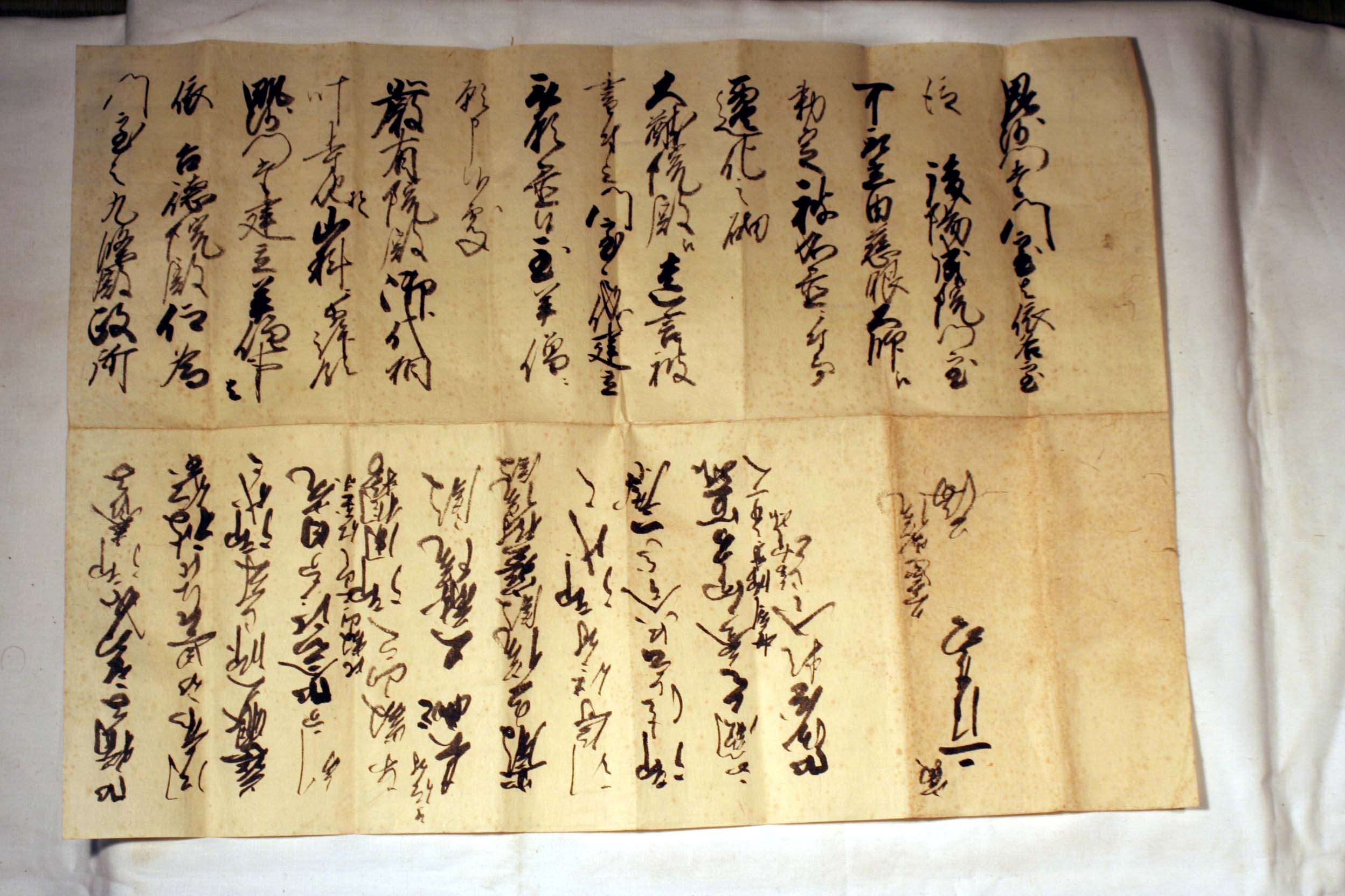 下の文書は、後陽成院が天海に命じて毘沙門堂(出雲寺)復興を約束させ、家綱の世代になってその願いは叶い、土地を山科にいただき、寺院が建立されました。その上、公海については、将軍秀忠の意向もあって門跡として、また九條幸家の実質的な養子のように取り立てられ、家光以下の法事の導師も命ぜられていたことがわかります。差出し人の公海は天海の高弟で、後西天皇の皇子公弁法親王の入寺に全力を注ぎ、これを育てて、毘沙門堂を門跡寺院として再興させました。これは、公弁と推測される「弟子を頼む」という、恐らく江戸の寛永寺か幕府関係者に宛てた文書の草案ですが、毘沙門堂再興の由来が語られている貴重な史料です。