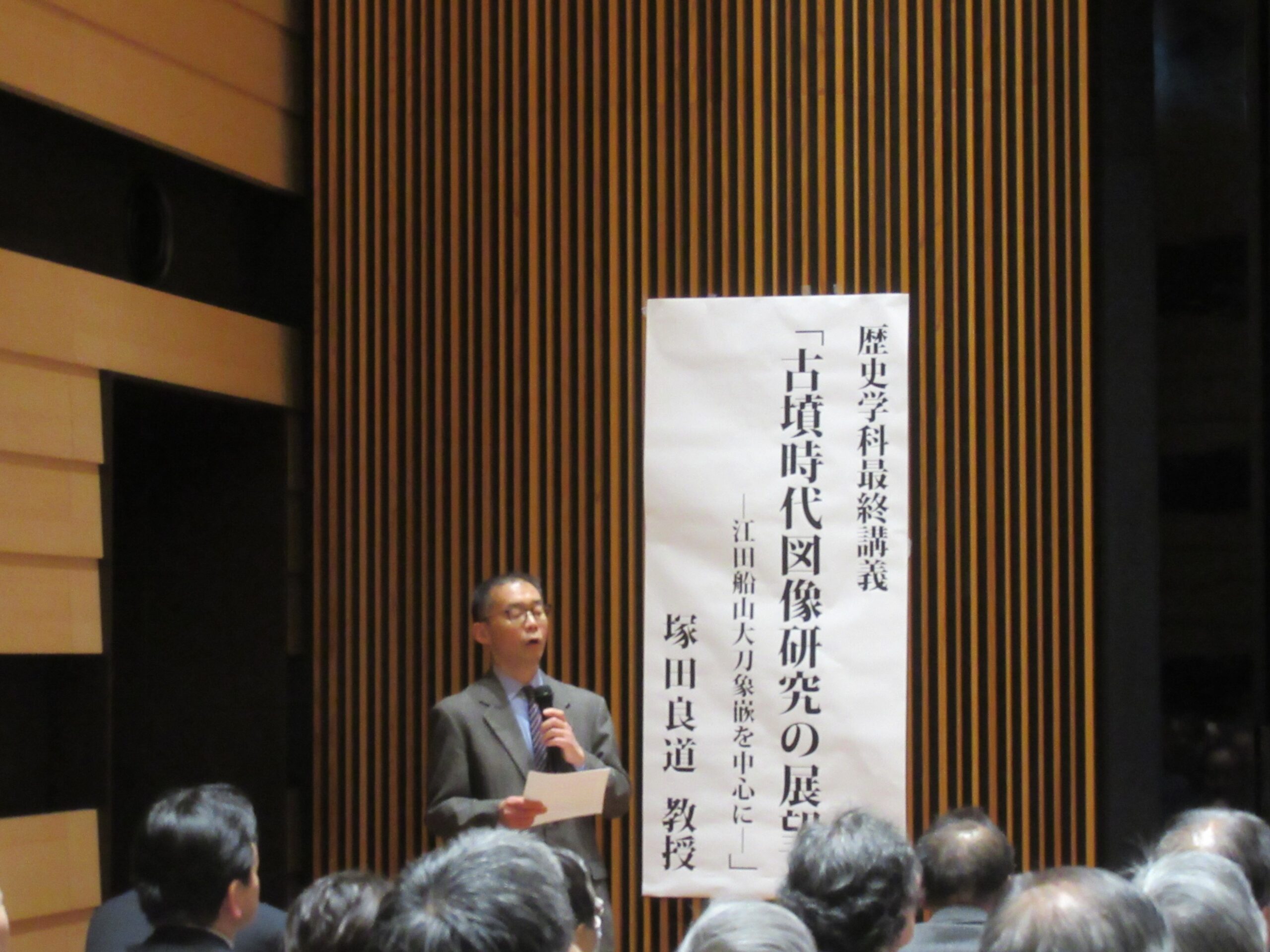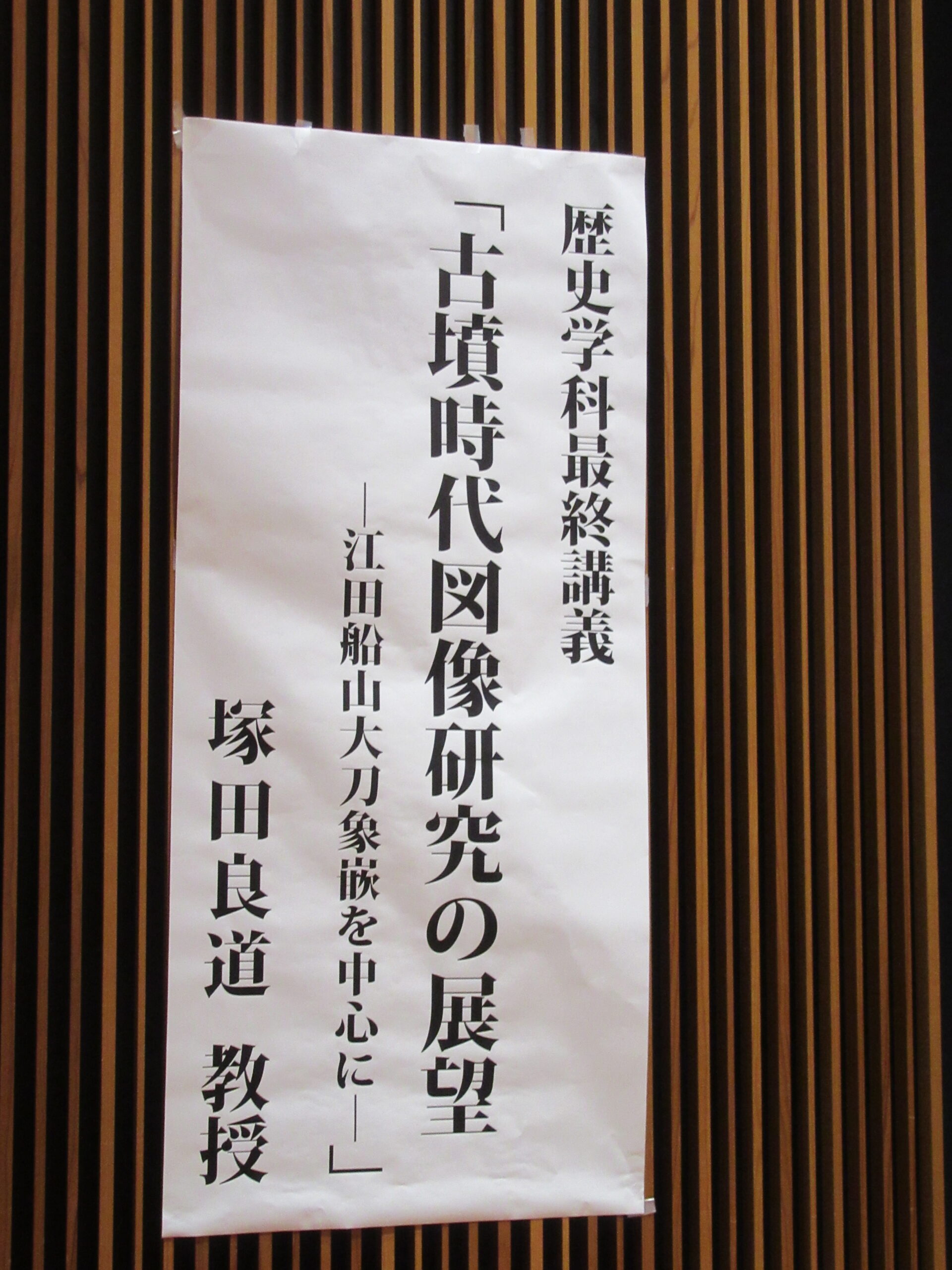 演題は「古墳時代図像研究の展望―江田船山大刀象嵌を中心に―」です。
