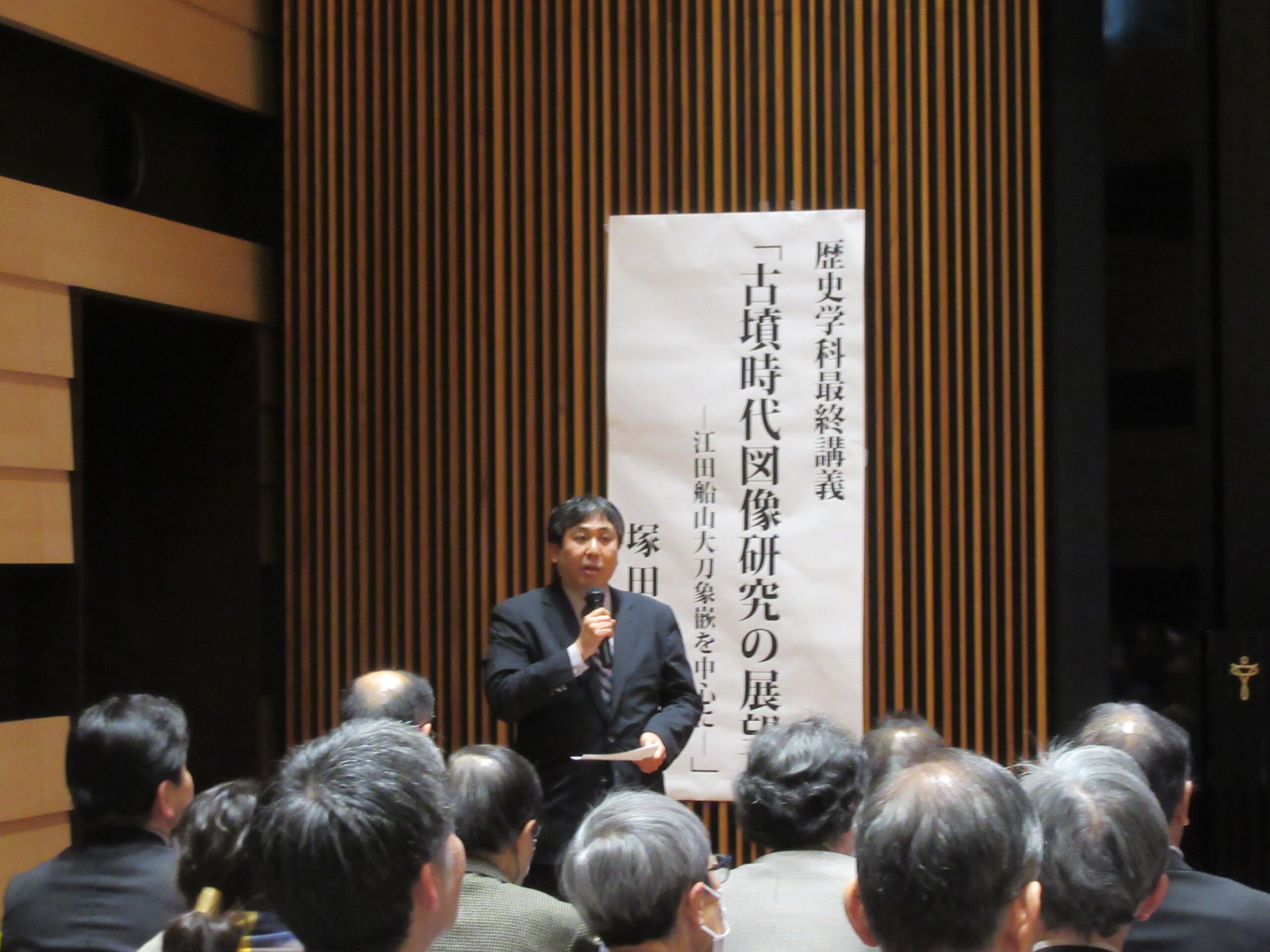 演題は「古墳時代図像研究の展望―江田船山大刀象嵌を中心に―」です。