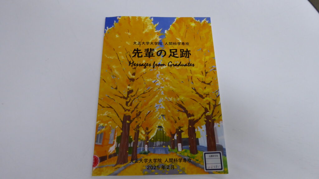 写真2.大学院人間科学専攻の修了生たちのメッセージを集めた冊子『先輩の足跡』