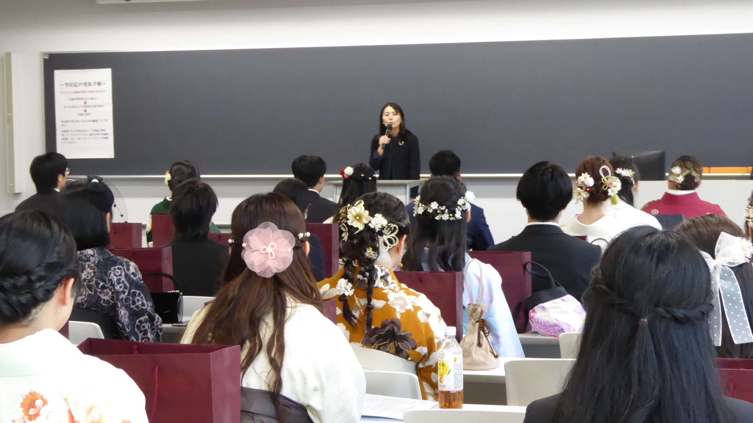 3月16日(月)に学位授与式が開催されました。 前日まで降っていた雨もすっかり上がり、当日は卒業生の皆さんの笑顔あふれる、あたたかな式となりました。 ゼミごとに教室に分かれ、一人一人にゼミの先生から学位記が手渡されました。会場は終始和やかな雰囲気に包まれ、それぞれの学生生活を思い返すような、心に残るひとときとなりました。 卒業生の皆さん、ご卒業おめでとうございます。今後のご活躍を心よりお祈りしています。 文責:人間科学科