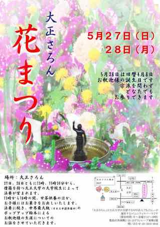 5月27日(日)~28日(月)にM宗教学特論D(担当:弓山達也先生)の講義の一環として、コミュニティスペース大正さろんにて行います、花まつりのポスターが完成いたしました。