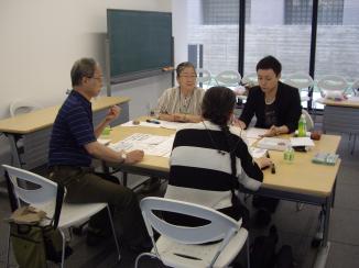 次に、2つの分類に沿って、2つの班を作り、実際にどのような授業が可能か、具体的な授業案作成のための議論をしました。齋藤は、「体験型ワークショップ」の班に入り、受講者と一緒に話し合いました。