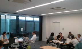 後半は、代表者がグループで話し合った結果を発表し、全体で討論しました。齋藤案に対しては、「導入と展開とまとめがどのように接続するのか」、「市民と児童がディスカッションすれば大人の意見に児童が引っ張られるのではないか」、「児童に脳死臓器移植を教えるためには新聞記事だけでは難しいのでは」といった質問がありました。一方で、「脳死臓器移植を児童にわかりやすく教えるための教材を市民が作ることが、「いのちの教育」に市民が関わることのできる手段となるのではないか」、「答えが出ないことを大人と一緒になって考えるということが重要なのではないか」といった意見も挙がるなど、議論は盛り上がりました。