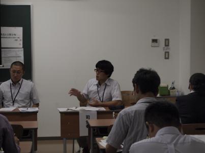 第四報告者の寺田先生(本学准教授)は、「新宗教の震災対応」と題して、「阪神・淡路大震災時における支援とその総括」に関わる議論を踏まえながら、宗教社会学における著名な類型論(いえ=おやこ・なかま=官僚制連結モデル)を用いて、新宗教教団の支援活動を整理・分析しました。そしてその結果として、阪神・淡路大震災時とは違う結論が得られるのでは、と主張しました。
