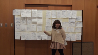 最後に、学生の感想を書いたメモをホワイトボードに貼り、それを参加者全員でみることにより、意見の共有を図りました。そして、教員がまとめの言葉を述べて、模擬授業を締めました。