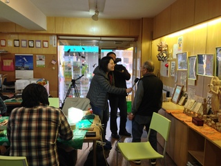 撮影終了後は、テレビクルーの方々と一緒にお茶会を開催しました。テレビクルーの方も、大正さろんがなくなってしまうことは地域にとって残念だとしきりにおっしゃっていましたが、活動の一部を大学などで継続して行っていくということをお伝えいたしました。