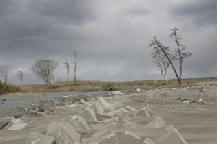 相馬市磯部地区 沿岸部には堆積した土砂と数本の木々しか残っていなかった