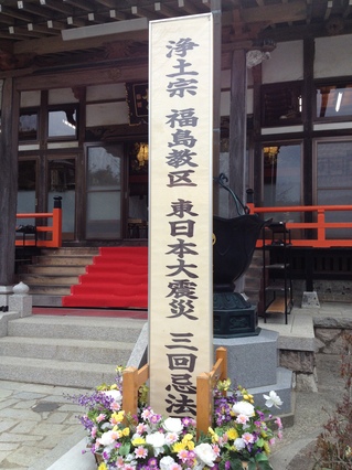 浄土宗福島教区主催の三回忌法要は、津波被害が甚大だった豊間地区の淨應寺で開催されました。そこでは、震災によって亡くなられた福島県内の浄土宗檀信徒で方のご回向を厳粛に行っていました。本来ならばご遺族のみが法要に参列するところを、無理を言って参列させていただきました。浄土宗福島教区および浄土宗災害復興福島事務所のみなさま、ありがとうございました。