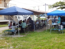 野外広場での浜○かふぇの様子(2013年7月 平山崎雇用促進住宅)