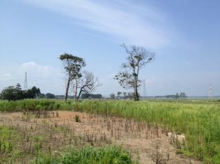 このほか、南相馬の海岸線も見学してきました。津波が来たあの日まで確かにあった集落は跡形もなく流され、強い夏の日差しの中で青々とした雑草だけが生い茂る更地になっていました。上屋が流され基礎だけになってしまった家、かろうじて残った防風林の松も塩害で立ち枯れ痛々しい様相を呈していました。