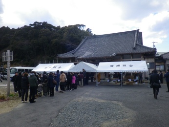 午後は創価学会調査班と合流をし、いわき市内で津波被害が甚大だった平薄磯地区に移動しました。薄磯では、海岸沿いを歩いたのち、修徳院で行われた薄磯地区追悼法要にうかがいました。修徳院は薄磯地区唯一の寺院で、多くの真言宗智山派僧侶が法要を勤めていました。私たちはお寺の外で法要に参列しました。