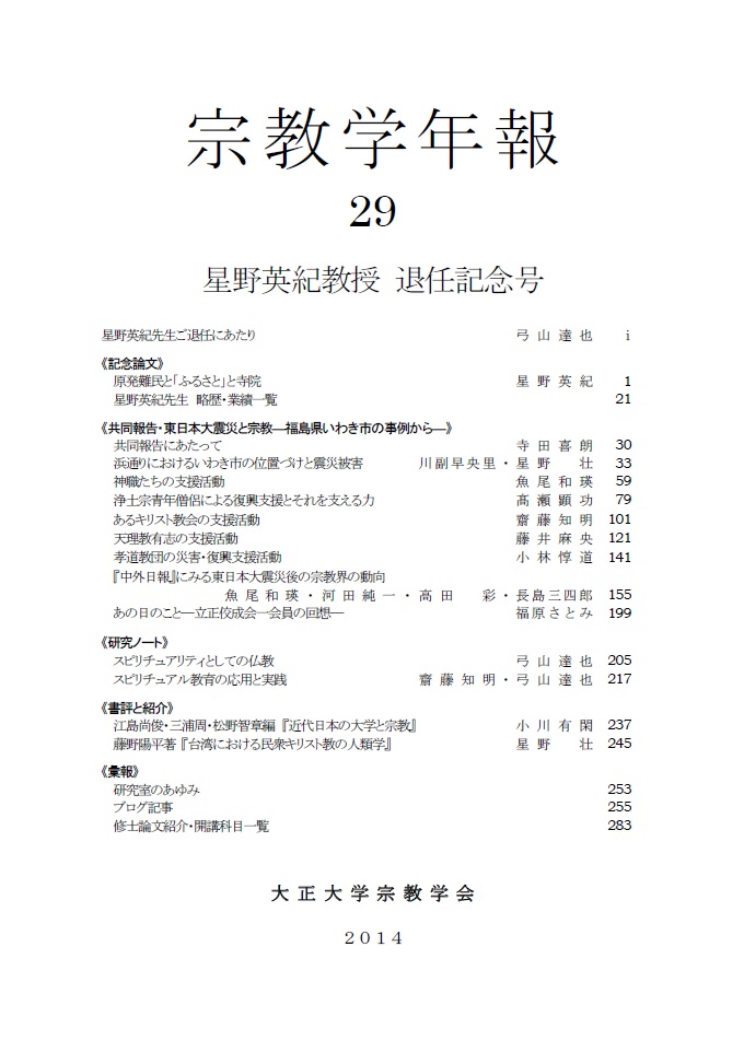 大正大学宗教学会で発行しております『宗教学年報』ですが、このたび第29輯が刊行にいたりました。執筆者・関係者のみなさまに対しまして、心より感謝申し上げます。