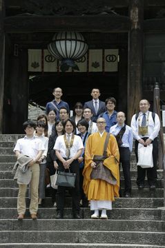 そして、弓山先生と院生らは奈良県宇陀市へ向かい、室生寺に参拝しました。真言宗室生寺派大本山の室生寺は奈良時代、後の桓武天皇である山部親王の病気平癒のため、5人の僧が室生の山地で祈祷をしたことが起源といわれています。この祈祷によるあらたかなご利益から、勅令で室生寺が建立されたとのことです。また、室生寺の最大の特徴といえるのが、真言密教の根本道場である高野山が厳しく女人禁制をひいたのに対し、室生寺は女人にも開かれた「女人高野」として親しまれている点です。