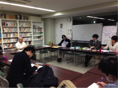 指導会は毎回、院生1人ずつが研究発表をおこないます。まず発表者が、研究テーマや論文の構成、現在進めている作業などについての報告を行い、その後、先生方や他の院生からの質疑応答、全体での議論という流れで行われます。質疑応答では、研究の目的が明確になっているか、明らかにするための資料や作業が妥当なものか、論文の構成は適切かなどの点を中心に確認を求められます。特に論文の構成や目次については、各章のバランスや結論への運び方について、時には細かい点にまで及んで活発な議論がなされます。また、このようにしたら研究が深められるのではないかという参加者からの積極的な指摘やアドバイスも出されます。