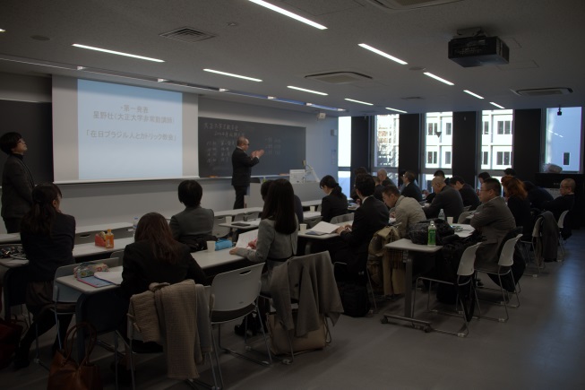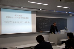 星野先生の発表「カトリック教会と在日ブラジル人」では、星野先生が執筆中の博士論文をもとにして、在日ブラジル人を支援するカトリック教会の司牧者たちは、今までどのような活動を行ってきたのか、そしてその活動にはどのような問題があったのか、『カトリック新聞』などの資料整理や教会、司牧者への調査をもとに発表されました。結果として司牧の局面において、小教区から教区レベルではさまざまな経験が共有され、それに応じた対策が練られるようにはなってきていますが、全国レベルでは、まだ十全にはなされていない現状が明らかになりました。