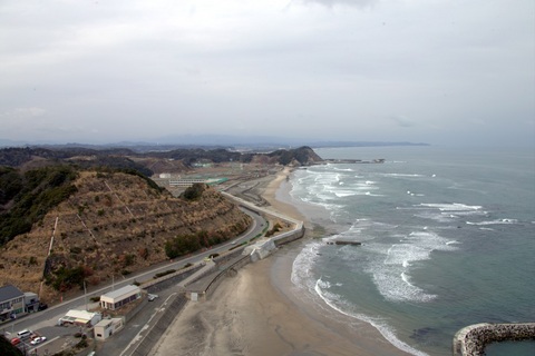 スタディツアーにて立ち寄った塩屋崎灯台から見える、何も無くなった薄磯地区