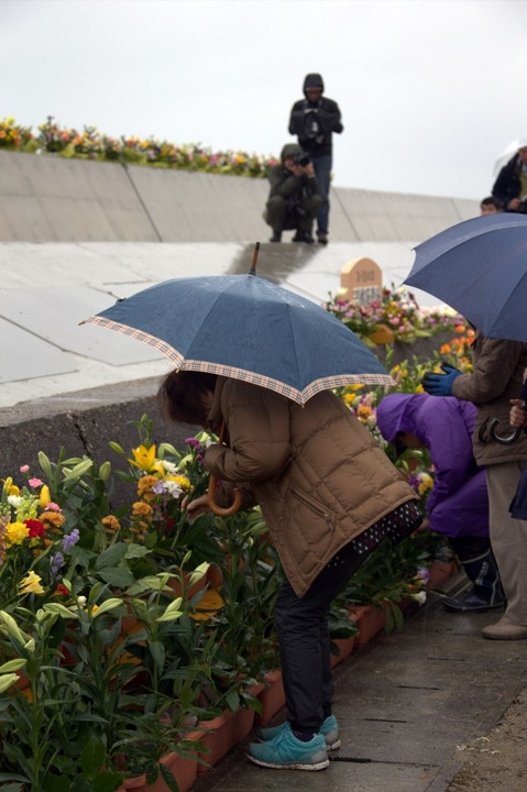 あいにくの天気でしたが、多くの人達が会場へと足を運んでおり、若い人達の姿が多かったように見えました。特に僧侶による読経の際に、雨に濡れながらも手を合わせる若い人達の姿が印象的でした。