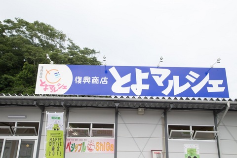 | このしらた斎場から歩いてすぐのところに、ふるさと豊間復興協議会と豊間復興商店街「とよマルシェ」があります。豊間地区では、津波によってほぼすべての建物が全壊、流出し、85名が亡くなりました。津波で流された商店の中で、豊間で再開しようと集まった人達によって運営されているのが、「とよマルシェ」です。八百屋だと思い入ったお店では、震災以前まで100年近く豊間で牛乳屋を営んでいたという店主からお話をお伺いすることができました。店主のお話からはいつか必ず豊間でまた牛乳を売りたいという強い意志と、これまで扱わなかった野菜を販売することに対する戸惑いを感じることができました。 |