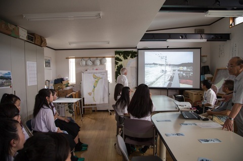 また、ちょうど復興協議会ではいわき市の高校生と兵庫県芦屋市の高校生とのミニ交流会が行われるとのことで、急遽見学させていただきました。復興協議会の方々が震災前後の豊間地区の写真などを見せ、今後の復興のビジョンを説明していました。