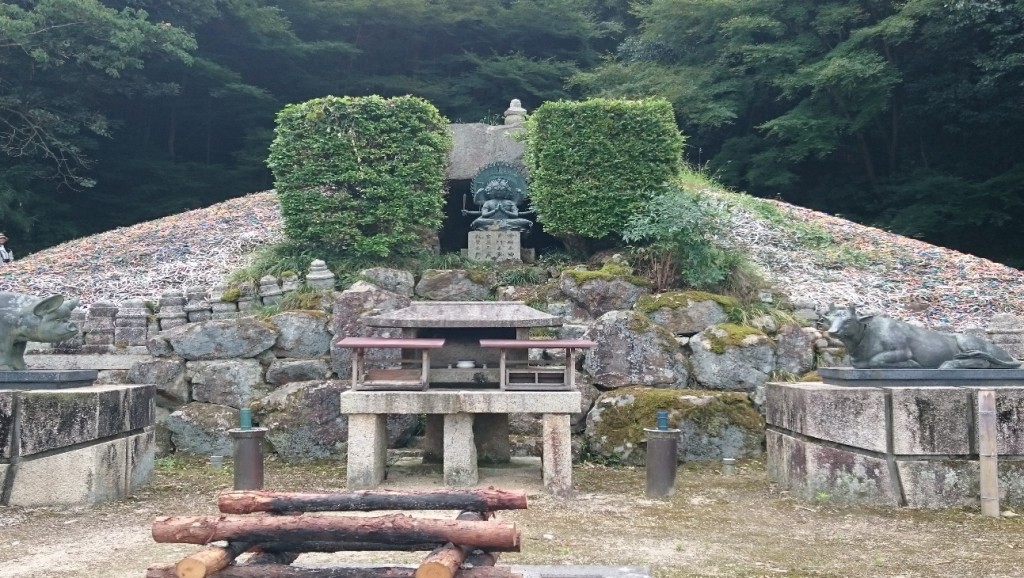 鼻ぐりは円墳の丘上に積まれており、石室内には真鍮の鼻輪から作られた南無阿弥陀仏が刻印された金属板が納められています。また正面には馬頭観音が祀られていました。私たちは護摩木に願いごとを書き、それを鼻ぐり塚の前にお供えしました。山積みの鼻ぐりを見ていると「これだけのいのちを頂いているのか」と神妙な気持ちになりました。