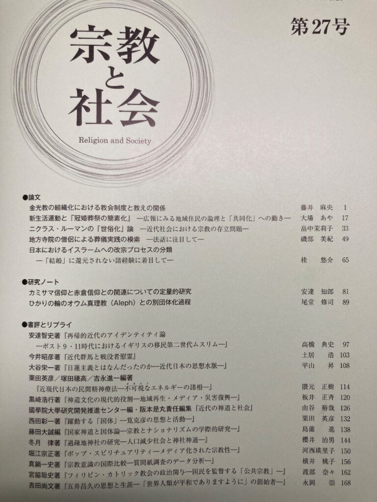 【宗教学専攻】研究室の近況②―『宗教と社会』27号―