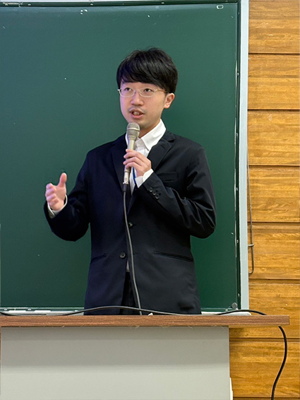 大学院博士後期課程在学中の芳賀徳仁さんは「富士大石寺顕正会のアイデンティティ」と題して、分派後の妙信講の展開について、同教団のアイデンティティの確立を詳細に跡付ける発表をしました。組織論的な分派過程だけでなく、法華講的な思考から独自性の高い分派セクト的思考への変化といった内面的な分派過程を明らかにし、何が優先されて、何が等閑視されたのかを可視化することで、同教団の現今の諸相を検討しました。