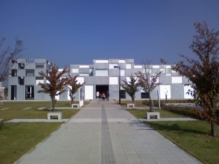 さらに、戦争関係の記念館のイメージとは結びつかないような、建物(乃村工芸社設計)についても述べておきましょう。記念館では、「空」を内側から見せることを大切にしているそうです。館内は非常に明るくなっています。つまり、館内には太陽の光が入ってくるし、館内から空を見ることができるということです。パンフレットには「変わらぬ空の風景から、当時の少年たちの気持ちや現在の平和な世界のことを考えてみて下さい」とあります。また、建物の外観は四角形の壁(亜鉛メッキをほどこした鉄板)とガラスとが組み合わされています。URLには「記念館の外観は幾何学的なシルバーの市松模様ですが、予科練習生たちがあこがれた空を映して刻々と表情をかえていきます」と書かれています。