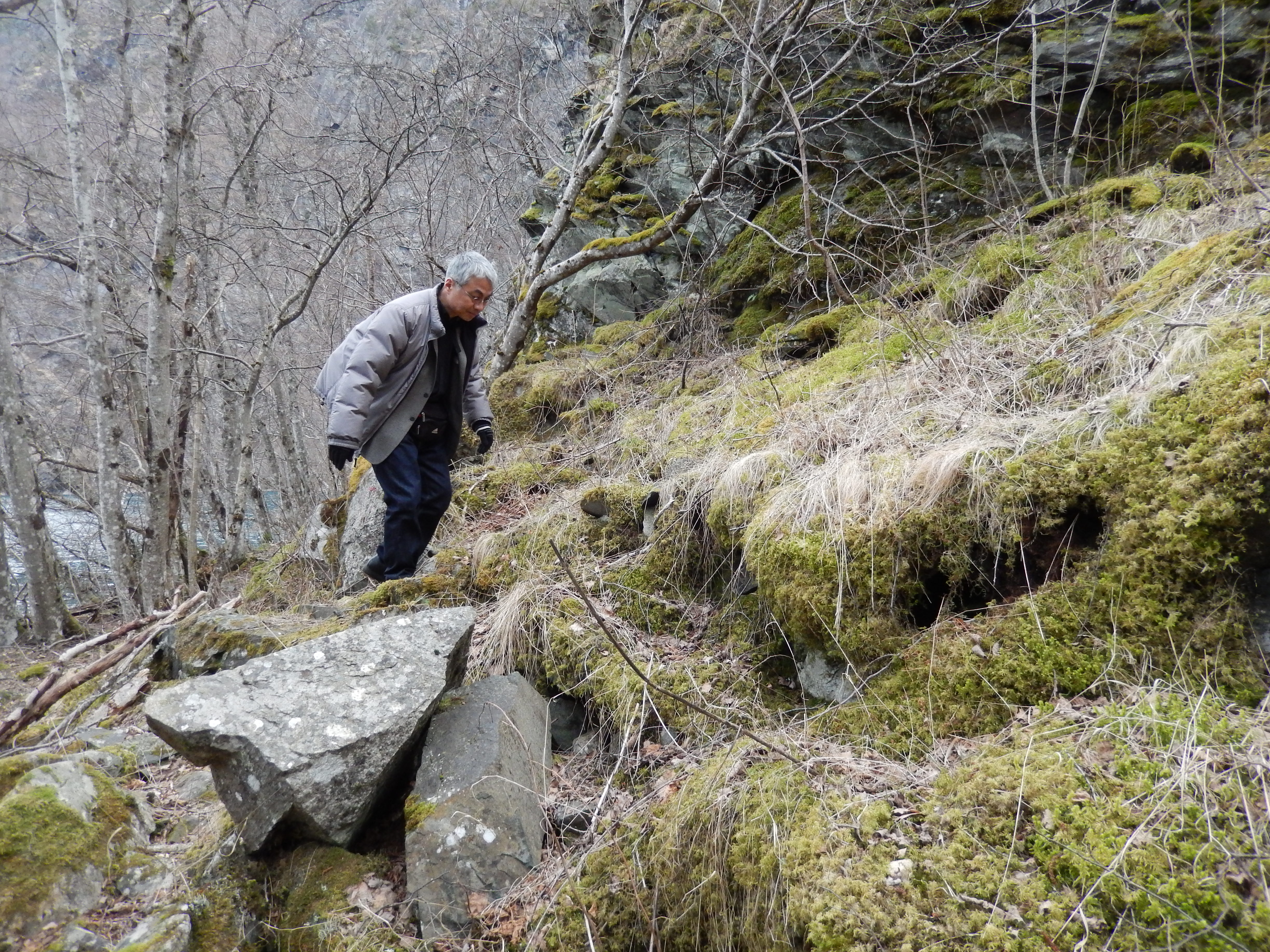こういう景色を見ながらの歩きです。しだいに小屋跡に近づいている気持ちは、多少の緊張感をともなった心地よいものでした。一歩一歩と近づくのがいいですね。