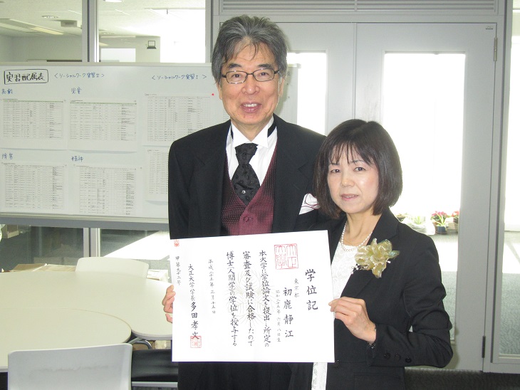 本年度の人間学専攻科社会福祉学専攻からは博士課程の初鹿静江さんが学位を取られて卒業した。初鹿さんは保健師で産業保健分野で働いていた方だったので学生とのダブル生活は大層大変であったろうと思うが、博士課程3年、研究生2年を経て無事学位を取得した。