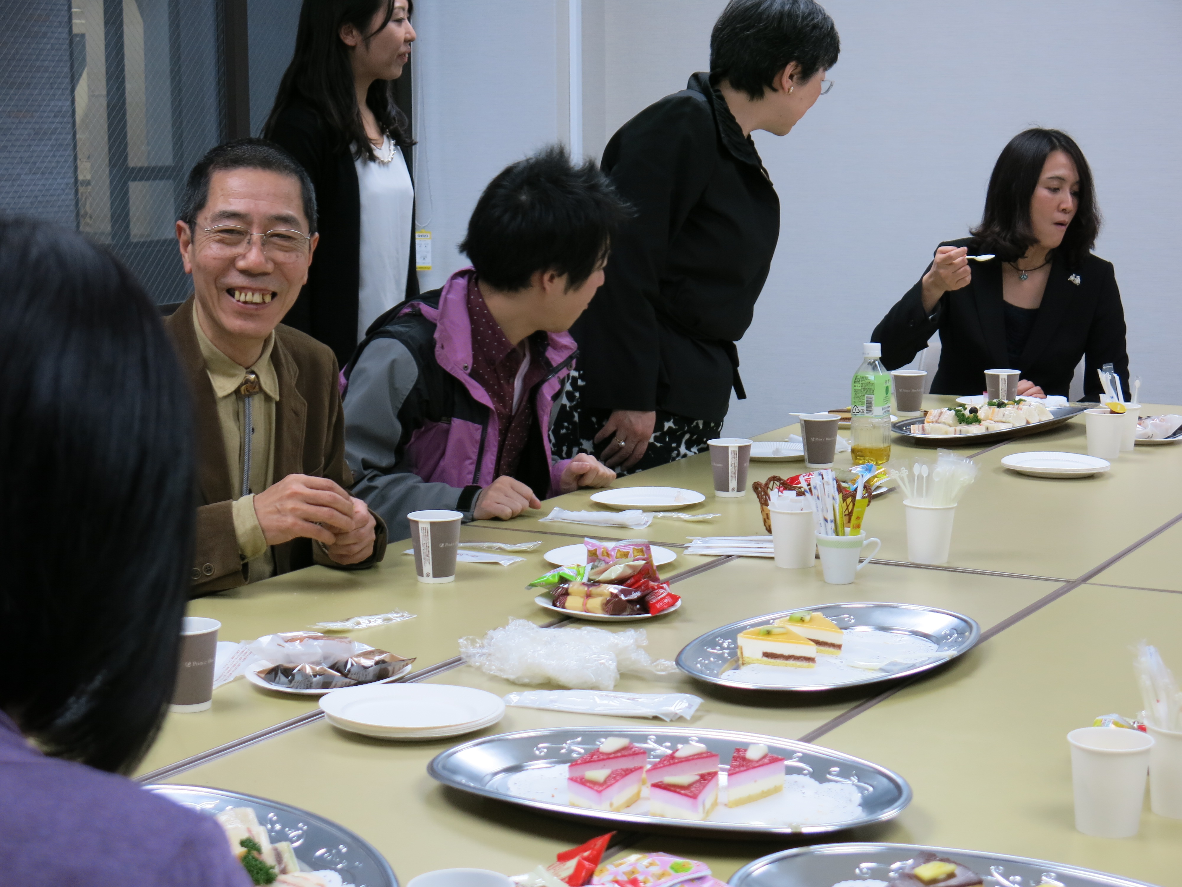 1部に続いての2部の交流会では、サンドウィッチやケーキにコーヒー紅茶のティーパーティーを行いました。参加した大学院生が和やかな雰囲気の中で自己紹介をしあったり、今日の研究発表の感想を述べ合ったりと楽しい歓談の時を皆で過ごすことができました。留学生の参加もあり、有意義な時を過ごすことができました。