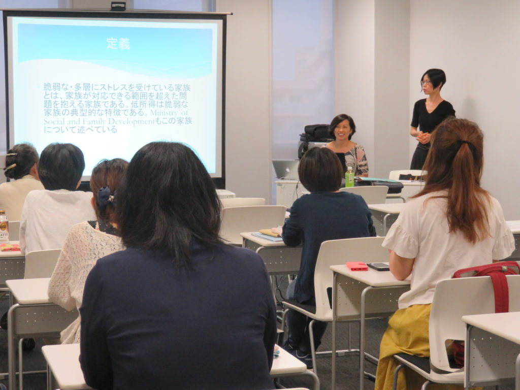 また、呉先生の研究テーマである「低所得世帯における親役割代行」においては、子どもは家庭内でのただの被害者ではなく、子どものストレングスが家庭に与える影響にも着目するという視点を学びました。そして、ワーカーは親のサポートを行うことで、子どもの負担を軽減していくアプローチが必要であるとのお話を聞き、現在豊島区内で行われている子どもへの学習支援活動や子ども食堂の取り組みなどにも、同様の視点を持つことが大切であると、再認識しました。貴重な講義を聴かせていただき、ありがとうございました。
