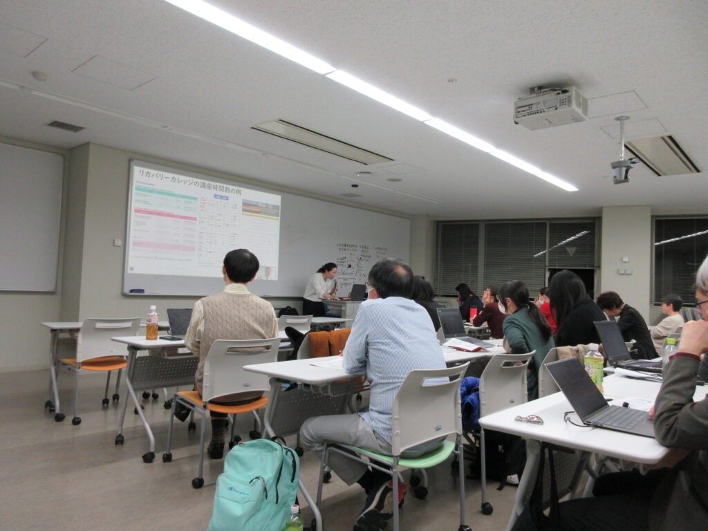 国際的な精神保健福祉の潮流である「共同創造」の考え方とともに、従来の精神保健医療福祉サービスとの比較とエビデンスに基づく視座を多くいただきました。特に、英国で始まった「リカバリーカレッジ」について、英国と日本のプログラム内容や実践方法、パーソナルリカバリーとの関連等、宮本先生の研究と実践を踏まえて、講義していただきました。