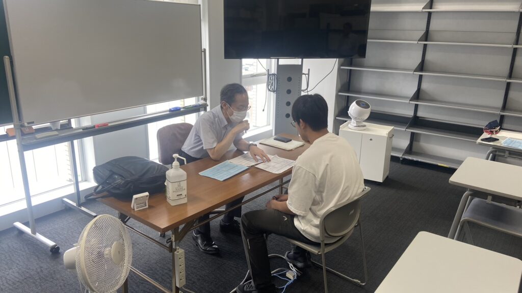 8月18日(金)に、教員採用二次対策の個人面接の練習をしました。