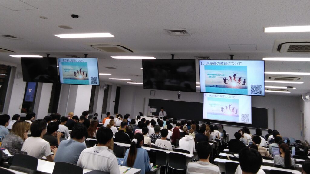 最初に履修する科目「現代教職論」において、10月7日に東京都教育庁 指導部高等学校教育指導課 統括指導主事の松井水穂先生をお招きし、東京都の教育について講義をしていただきました。