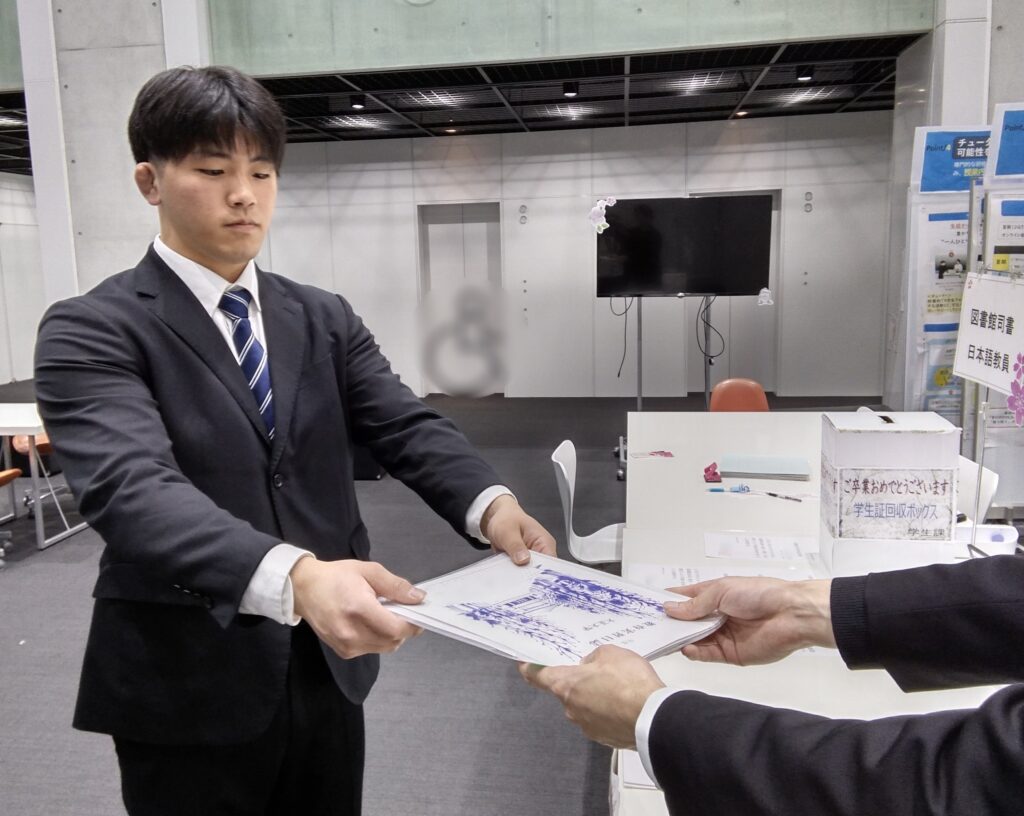 教職課程修了者には、教育実習日誌の返却とともに、教育職員免許状が受け渡されました。