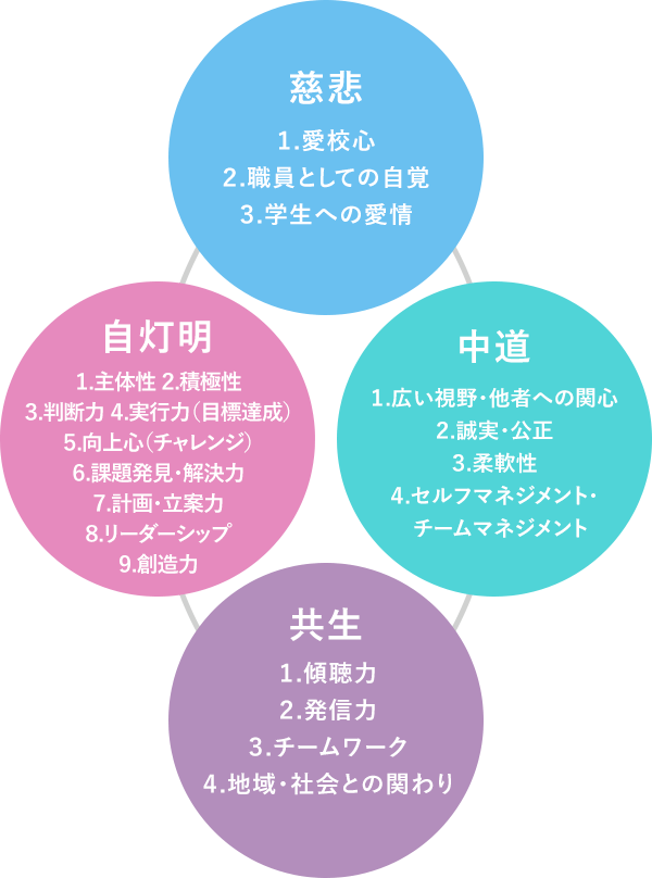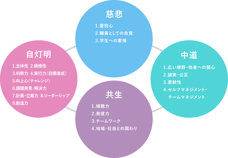 教育研究と経営を支える一員として、学生とともに「4つの人となる」を実践します。