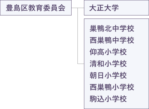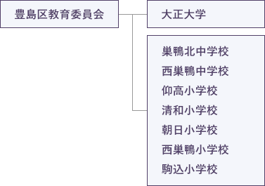 | 構成 | 豊島区教育委員会、大正大学 巣鴨北中学校、西巣鴨中学校、仰高小学校、清和小学校、朝日小学校、西巣鴨小学校、駒込小学校 |