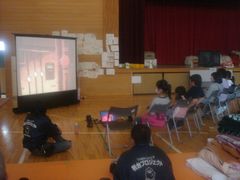 | 入谷小学校体育館でのDVD上映 | |