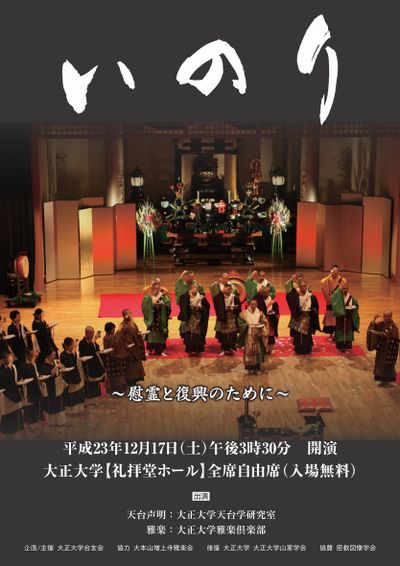 大正大学天台学研究室 教職員・学生・OB 大正大学 雅楽倶楽部 協力:大本山増上寺雅楽会 |