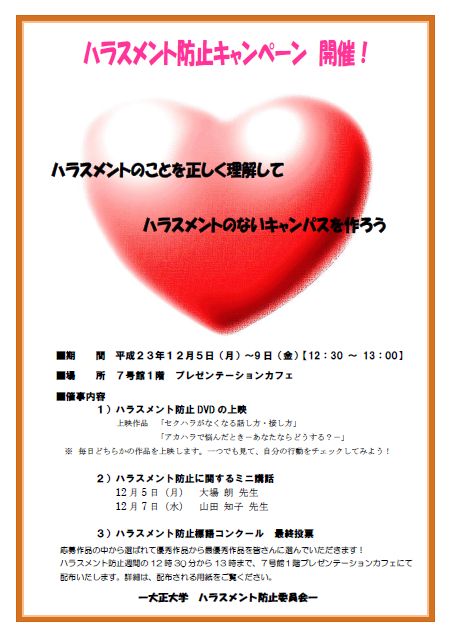 『ハラスメントのことを正しく理解してハラスメントのないキャンパスを作ろう』というテーマのもと、
